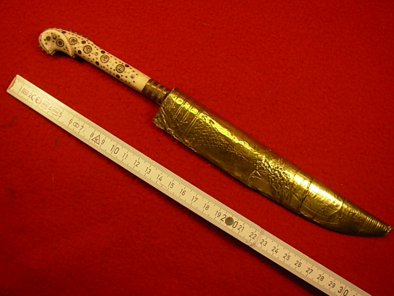 Altes Balkanmesser – Bosnien ? – Kaukasus ? – Original – Scheide mit Königskrone und Monogramm verziert – Beingriff -– schöner Zustand -