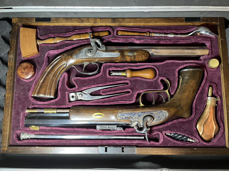 Großer Repräsentativer Vorderlader Duellpistolenkasten mit 2 unterschiedlichen