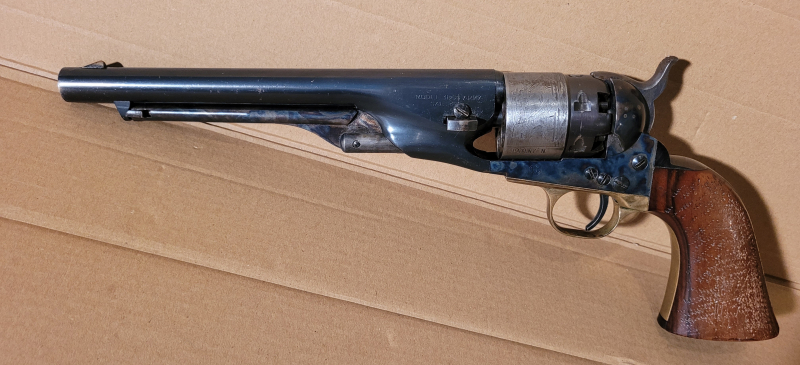 Sie bieten auf einen guten Vorderladerrevolver Hege Uberti im Kaliber .44 aus dem Bestand eines älteren Jägers, der die Jagd aufgegeben hat.