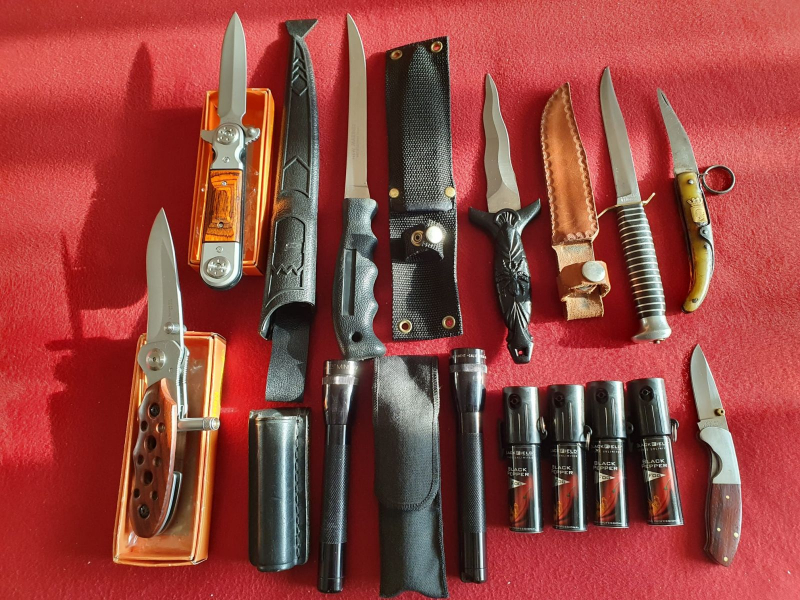 u.a. 2x Mag-Lite mit Etui, 4x Pfefferspray und 1x Original Korsisches Klappmesser um ca. 1900