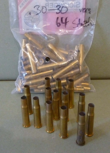 Biete 64 Hülsen für das Kaliber .30-30 an. Diese sind von verschiedenen Herstellern.