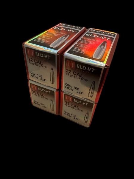 390 Stück Hornady .224 ELD VT 62 grs. Geschosse