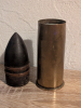 Französisches 37mm Patrone aus dem 1. Weltkrieg. Fachgerecht deaktiviert, frei von jeglichen Gefahrstoffen und rein zu Dekorationszwecken/für Sammler geeignet. Schöner authentischer Zustand.