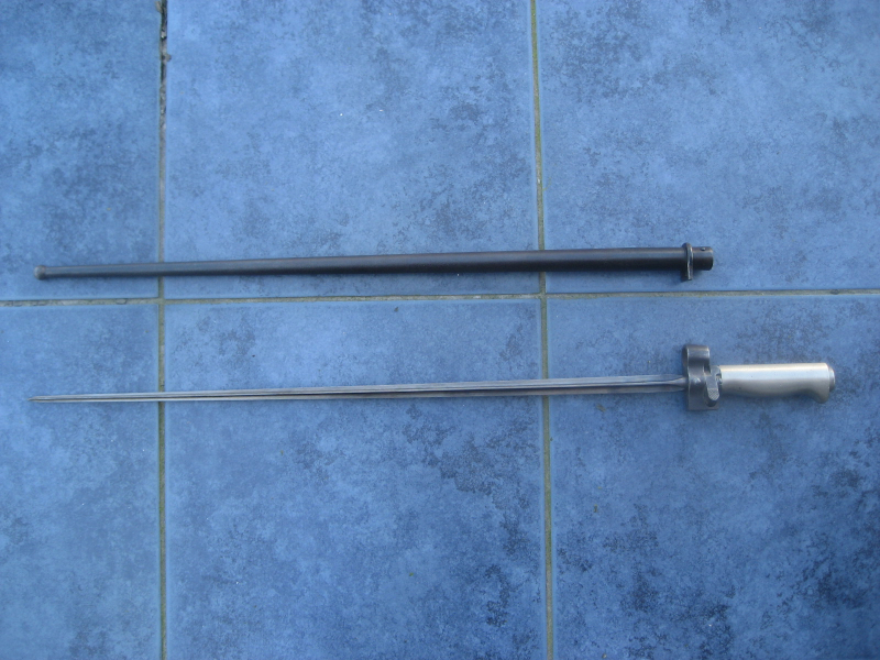 biete aus einer alten Sammlung ein schönes französisches Bajonett Epee M1886 /93 /16 für den Lebel. Das Bajo rostfrei mit Weismetallgriff und super Klinge und dazu noch mit der nummerngleicher (B4523, Bild 3) Scheide. Das ist sehr selten! Die Scheide auch noch sehr schön, nur im unteren Bereich sehr fein Rostporig. Keine tiefen Rostlunker oder ähnliches. Insges. ein sehr schönes Stück, das sich noch leicht verbessern läßt. Da nummerngleich hier mal nicht ab 1€, sondern ab 90€.