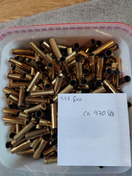 Ich muss aufräumen. Sie bieten auf ca. 970 abgeschossene Boxerhülsen im Kaliber .357 Mag. Fabr. Geco. Die Hülsen sind getumbelt, vollkalibriert und entzündert. Die Menge wurde über das Gewicht (4,77kg) bestimmt. Bitte beachten Sie auch meine anderen Auktionen und mein myGun.