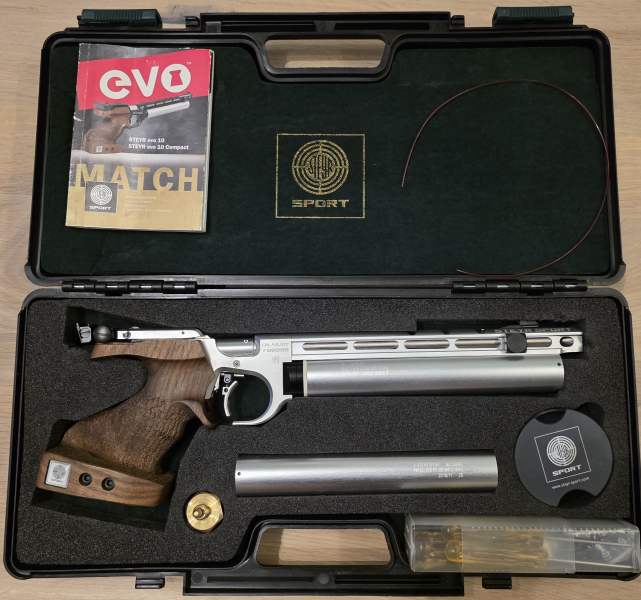 wir bieten eine Steyr Evo 10 in der Farbe Silber, mit Koffer und 2 Kartuschen an die Waffen wurde vor 2,5 Jahren bei steyr gewartet hiebei wurden einige Dichtungen erneuert. Die Waffe wurde nur wenig benutzt.