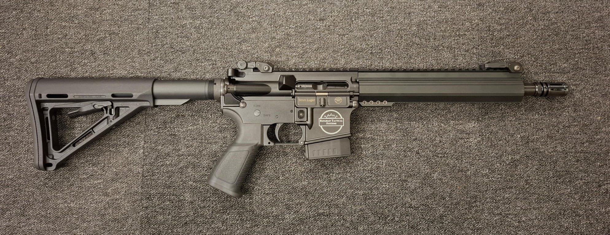 Wir bieten hier eine Bavarian Tactical Systems 9mm AR15 Neuwaffe an. Mit Lauflänge 10" und dem geschlossenen Vorderschaft zum sportlichen Schießen zugelassen. Die Waffe hat einen normalen AR15 Lower und kann daher mit normalen Uppern wie 223rem genutzt werden. Die Waffe nutzt normalgroße CS-Mags in 9mm.