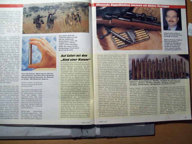Für Großwildjäger und Gewehrschützen +++ angeboten wird ein älteres Visier - Heft mit einem sicher sehr interessanten und sicher sehr seltenen Bericht -- ** Großwildbüchse im Super-Kaliber .500 ** -- Mit 13 000 Joule fegen die .500er A - Square-Geschosse los, mit denen Großwildjäger die " Big Five " jagen. Großwild-Büchsen entwickeln eine so enorme Auftreff-Energie, daß ihnen nicht mal Stahlplatten standhalten. Sie können in dem interessanten Bericht den Test einer 500er nachlesen. Es ist ein Bericht (13 Seiten) mit techn. Daten der Testwaffe. +++ und es gibt noch weitere interessante Berichte +++ Das Heft ist gebraucht, befindet sich aber in einem sehr guten Allgemeinzustand +++ Der Versand erfolgt als Großbrief mit DHL (unversichert) ; die Versandkosten gelten nur für Deutschland.+++ Bieter aus dem Ausland bitte Versandkosten vor Gebot erfragen.+++ Versandrabatt möglich, sehen Sie auch meine anderen Angebote.+++ Privatverkauf, daher keine Gewährleistung, Garantie oder Rücknahme.oo* 197+++ Fragen bitte mailen.