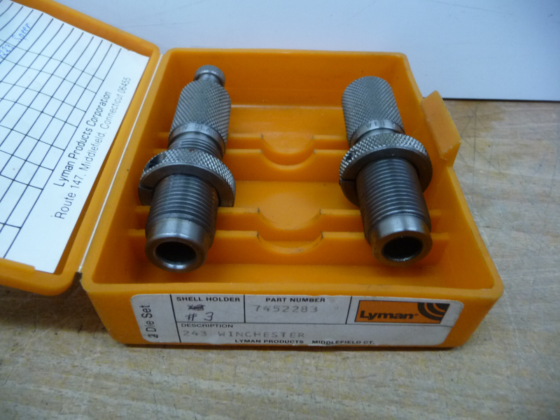 Hier wird ein gebrauchter Matrizensatz des Herstellers Lyman für das Kaliber .243 Win. angeboten.