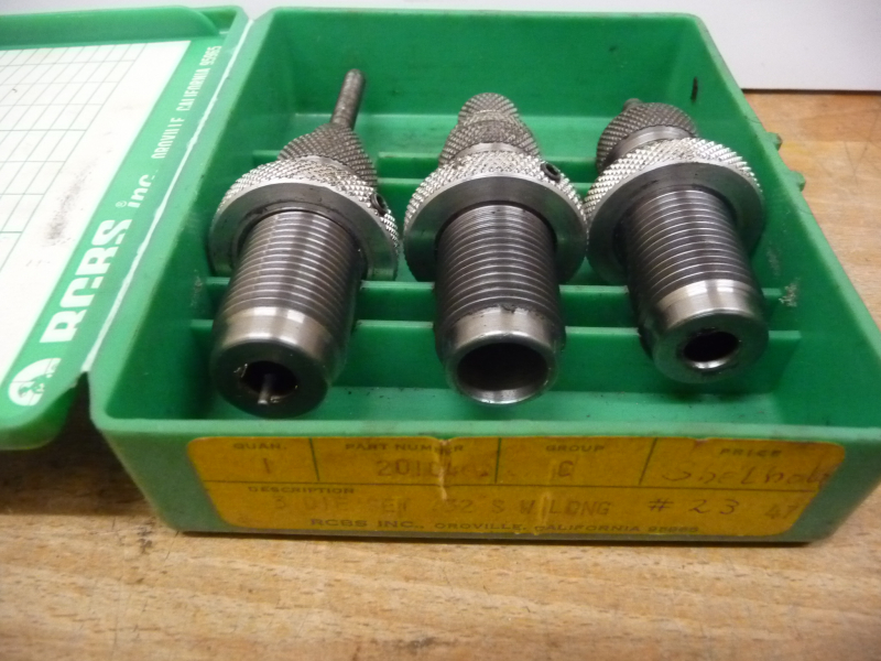 Hier wird ein gebrauchter Matrizensatz des Herstellers RCBS für das Kaliber .32 S&W long angeboten.