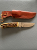 Mit sehr schönen Hirschhorn-Griffschalen und Lederscheide.