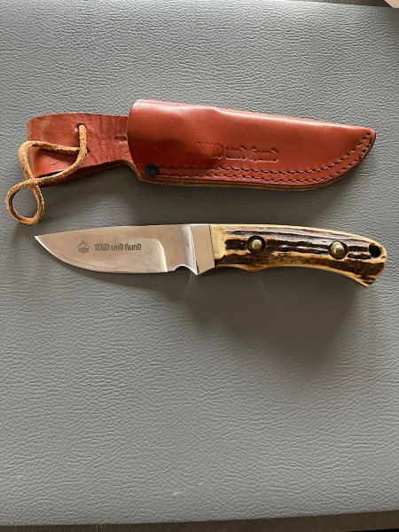 Das Messer wurde wenig gebraucht und hat jedoch Gebrauchsspuren zum Beispiel Kratzer auf der Klinge. siehe Foto.