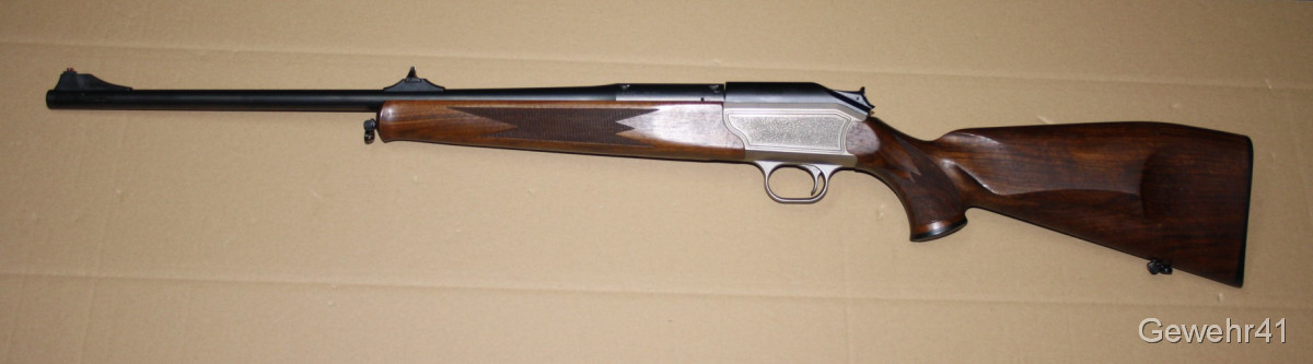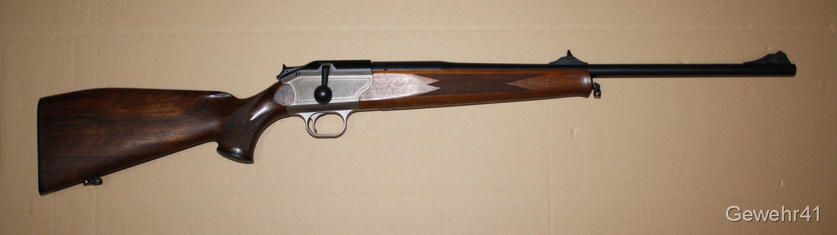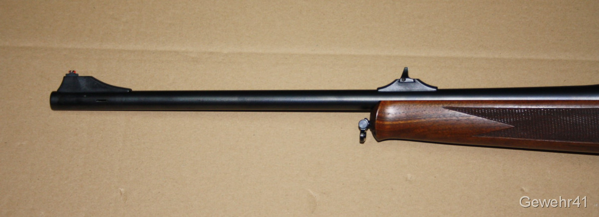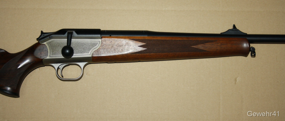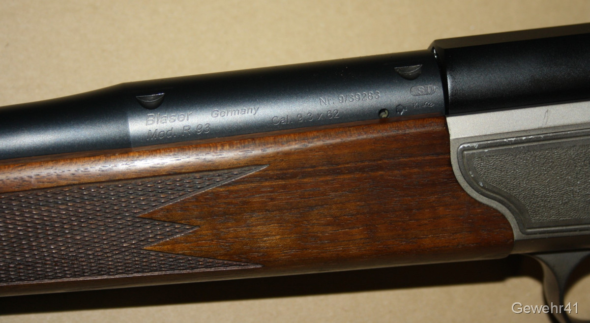 Sie bieten auf diese einwandfreie, gepflegte Blaser R93 Repetierbüchse im starken Kal. 9,3x62. Einwandfreier Zustand, Lauf und Funktion einwandfrei. Mit verbautem "Kick-Stop". Lauflänge 57,5cm, Schaftlänge 36,5cm, Gesamtlänge 102cm.