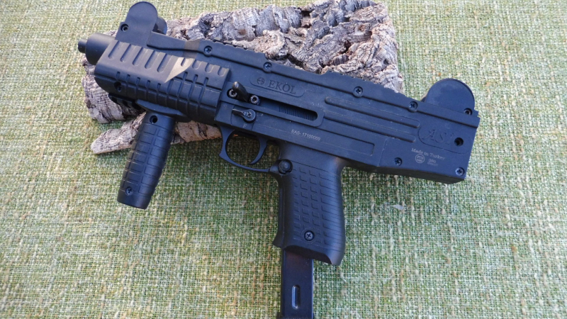 Die EKOL ASI Schreckschusspistole im Kaliber 9mm PAK ist in Ihrem Design stark an die klassische UZI Maschinenpistole angelehnt.