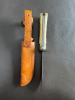 Das Messer wurde gebraucht und hat Gebrauchsspuren zum Beispiel Kratzer auf der Klinge und wurde nachgeschliffen. siehe Foto.Die Beschriftung ist fast verwischt, dennoch ein traumhaftes Gebrauchsmesser für den anspruchsvollen Waidmann!