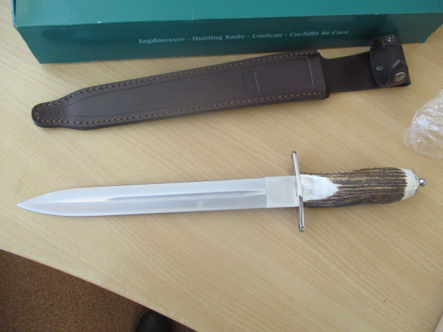 Verkaufe aus Nachlass Sammlung einen neuen unbenutzten Hirschfänger von Parforce. Klinge aus 440C Rostfrei Stahl 30cm . Gesamt 43cm.