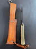 Mit sehr schönen Hirschhorn-Griffschalen und Lederscheide.