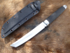 Sie bieten auf ein Tanto Kampfmesser aus 5160 er Stahl im Cold Steel Style. Die Schneide des Tanto Messers hat einen leichten Hohlschliff, der Griff ist aus strukturiertem Craton. Die Scheide ist aus Kydex, mit einem verstellbaren Gürtelclip.