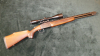 Tikka BBF, Kal. .222Rem. und 12/70, Einschloss-Handspannersystem (Hahn) mit seitlichem Laufwahlschalter, altersgemäß guter Zustand, ganz leichte Abriebspuren in der Brünierung. Deutscher Beschuß 1973. Schußleistung sehr gut, siehe Bild: 5 Schuß mit RWS 3,2g TM (je 2 und 3 Schuß 1 Loch) auf 100m. Läufe innen blank, Lauflänge: Schrotlauf 63,5cm, Kugellauf 58cm, Schaftlänge 35,5cm, Gesamtlänge 104cm. Auf der Waffe ist mit Aufschubmontage ein Meopta Artemis 2000 mit feinem Absehen 8 montiert. Leider ist die Objektivlinse innen beschlagen. Das stört bei Tageslicht nicht, kostet wohl aber in der Dämmerung etwas Licht. Kann bei Meopta natürlich auch gereinigt werden.