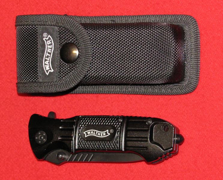 Zum Verkauf kommt ein WALTHER Taschenmesser mit Gürteltasche