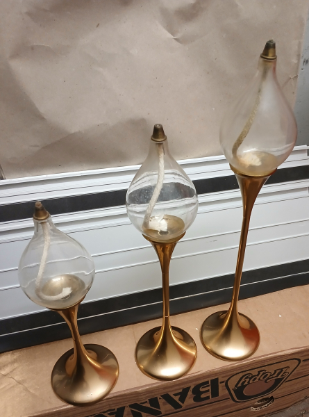 3 Öllampen Freddy Anderson aus den 70er Vintage gebraucht standen lange in der in der Vitrine unbeschädigt Messing massiv. Keine Garantie und Rücknahme da private Auktion.