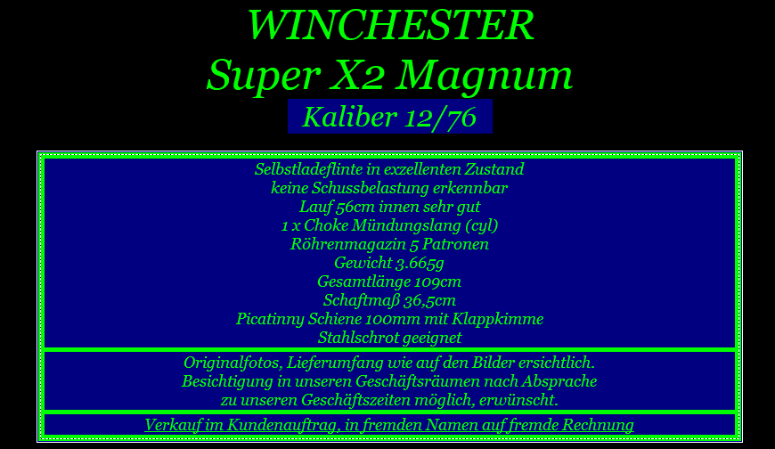 Artikel-ID: 20321311  •  ArtikelNr. des Verkäufers: 12630  •  Kategorie: Sportgewehre > Sportflinten