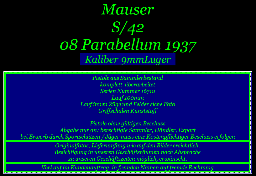 Mauser S/42 08 Parabellum 1937 Kaliber 9mmLuger