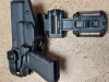 + ein RADAR / Behördenholster mit doppelter Sicherung / Bügel + Daumen, 3fach höhenverstell- und schwenkbar/nach vorne z.B. beim Sitzen im Fahrzeug/Sicherheitsgurt.