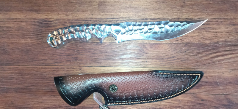 Full Tang Jagdmesser, hochglanzpoliert inkl Griff, Lederscheide, Sehr scharf, Unbenutzt