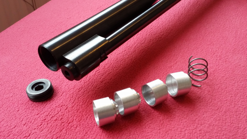 Biete hier einen hochwertigen  Airstripper bzw. Separatoreinsatz aus Aluminium für das Laufgewicht des Luftgewehr Weihrauch HW 97k für Kaliber 4,5 - 5,5mm (Kaliber 6,35mm auf Anfrage möglich). Der Einsatz besteht aus 4 Teilen plus Feder. Durch diesen Einsatz wird die dem Geschoss nachströmende Luft verwirbelt und abgebremst, was zu einer Verbesserung der Präzision und einem sanfteren Schussverhalten führt. Der Einsatz besteht aus vier trichterförmigen Kammerstücken und einer Druckfeder und wird einfach in das Laufgewicht der HW 97k eingelegt. Diese Kammerstücke sind exakt an den Innendurchmesser des Laufgewichts angepasst und greifen genau ineinander, die Kappe des Laufgewichts lässt sich vollständig schließen und der Einsatz hat kein Spiel. Dieser hochwertige Einsatz ist nicht zu vergleichen mit den billigen Schaumstoffeinlagen, die es für das HW 97k zum Nachrüsten gibt. Gegenstand dieses Angebotes ist der schalldämpfende Separatoreinsatz bestehend aus 4 Kammern mit Feder.