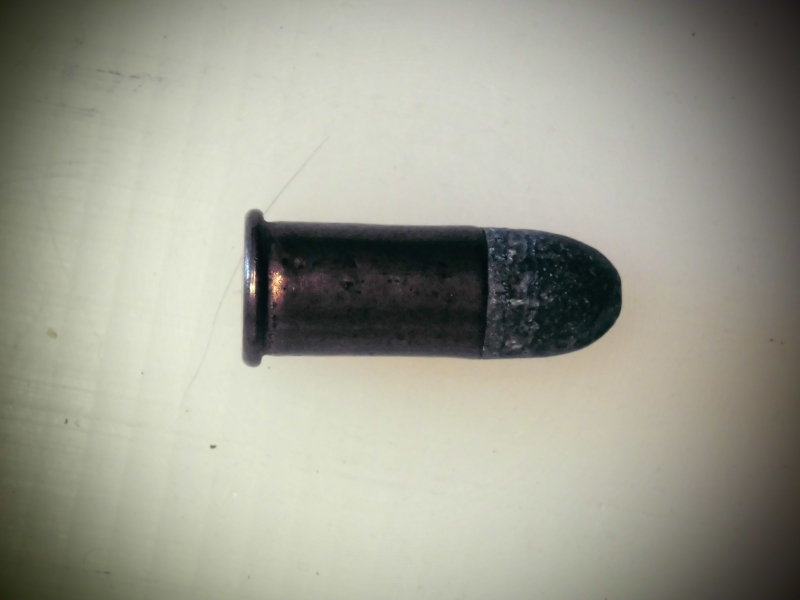 Sammlungsauflösung. Moin Sie bieten auf eine seltene Deko Patr. mit Klapperkugel im Kal. .38 Short Colt Kupferhülse mit verd. Zündung.Privatverkauf,keine Garantie, keine Rücknahme.