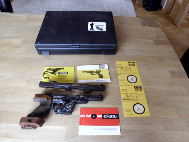 Verkaufe gg.EWB aus dem Nachlass meines Vaters eine Sportpistole Walther GSP .22lfb mit Wechselsystem .32WC .