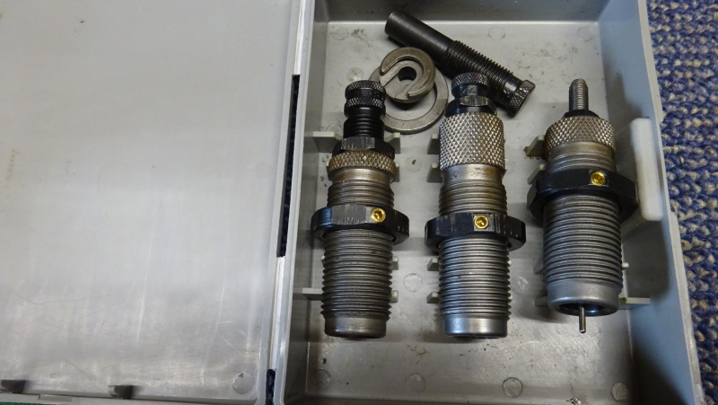 Biete aus Schützennachlass einen RCBS Matrizensatz für das Kaliber .44 Magnum/ .44 SPL incl. passendem Hülsenhalter und zweitem Setzstempel Die Matrizen befinden sich im ordentlichen Zustand mit leichten Gebrauchsspuren . Gewinde und Inbusschrauben sind tadellos. An den Muttern befinden sich leichte Riefen, vermutlich von einer Zange (siehe Foto). Die Funktion der Matrizen ist einwandfrei.