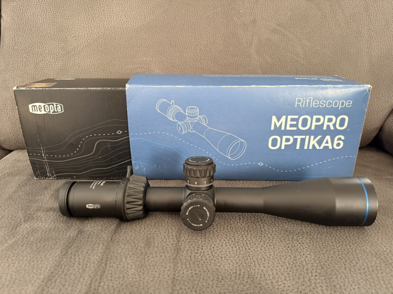 Zum Verkauf steht ein Meopta Optika 6 4,5-27x50 FFP (Absehen 1. Bildebene) mit dem MRAD 1 RD Absehen (siehe Bild).