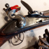 Sammlungsauflösung / Verlassenschaft - Steinschloß-Gewehr - militärisch, aus der englischen Kolonialzeit, gemarkt TOWER GR, imposante Länge von 145cm, cal. 15mm, Schaftholz gut mit leichten Gebrauchsspuren, Schlossfunktion OK, mit schwerem 8-Kantlauf, vorne trichterförmig geweitet mit Zügen, Zustand gut und gepflegt im Originalzustand mit Putzstock, keine Touristenware !