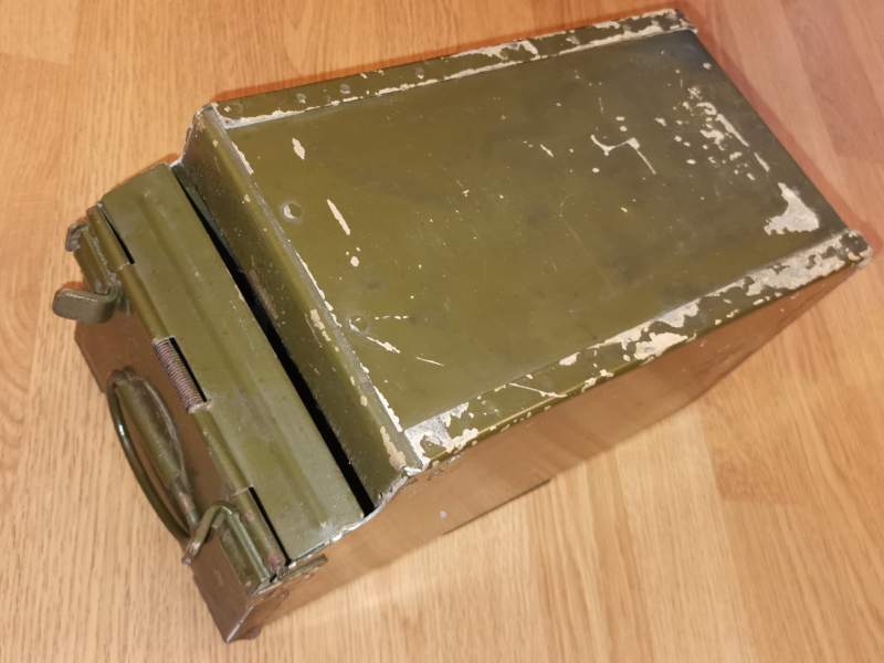 Sehr gut erhaltener KPWT - Gurtkasten mit Gurt ( komplett ) . Kasten ist vorgesehen für 50 Schuss in Kaliber 14,5 mm . Alle beweglichen Teile sind intakt , Gehäuse ist ohne Dellen ! Beachten sie meine andere Auktionen , - sparen sie die Versandkosten ! PayPal nur auf Anfrage möglich ! An alle Bieter mit 0 Bewertung : bitte zuerst sich bei mir melden , - sonst lösche ich alle eure Gebote ! Privatverkauf , daher kein Tausch , Garantie oder Rückname .