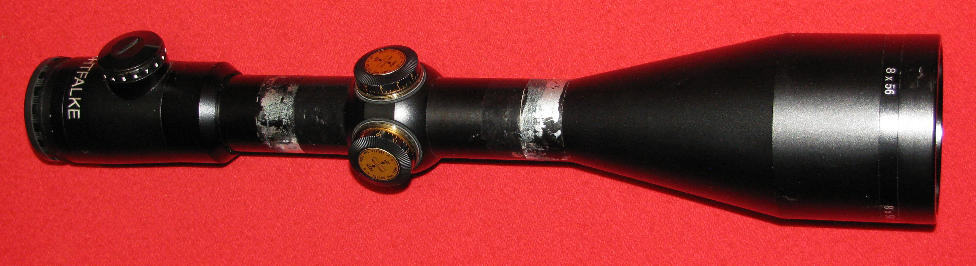 Zum Verkauf kommt ein ZF / Zielfernrohr, ein NACHTFALKE 8 x 56 mit dem Absehen Duplex und einem Leuchtpunkt