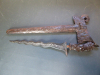 Aus meiner Sammlung gebe ich, ein großen Kris wahrscheinlich nicht so alt? mit geschnitzter Scheide, Griff als Götze geschnitzt ab. Kenner werden es sicherlich wissen, wo das Teil getragen wurde. Griff Holz als Götze geschnitzt. Zweischneidige gewellte Klinge, sehr scharf. Scheide aus geschnitzten Holz oben mit Götze. Das Alter? könnte auch Neuzeitlich sein? aber sehr schöne Arbeit. Das Teil ist im Sammelwürdigen Zustand. Alles andere entnehmen Sie Bitte den Fotos. Gesamtlänge: 66 cm, ohne Scheide: 51,5 cm, Klingenlänge: 36,5 cm, Klingenbreite: 5,3 cm. Kann zu jederzeit bei mir besichtigt werden. Privatauktion keine Rücknahme und Garantie.