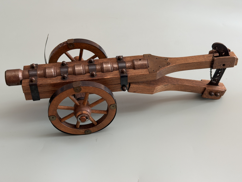 Achtung: Am Rad der Kanone ist auf einer Seite die Bereifung aus der Halterung gerutscht (siehe Foto). Mehr fehlen die handwerklichen Fähigkeiten und die Lust das zu machen... Vielleicht was für den ein oder anderen Sammler? Ansonsten noch ein Stück wie aus den alten Katalogen...