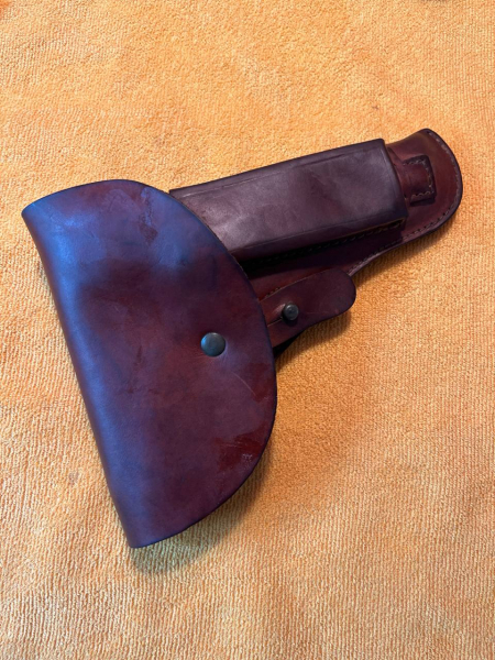 Das Holster ist wahrscheinlich selten, sicher interessant für eine Vitrine, sei es wenn man die richtige oder "nur" ein Modell der scharfen Waffe hat.