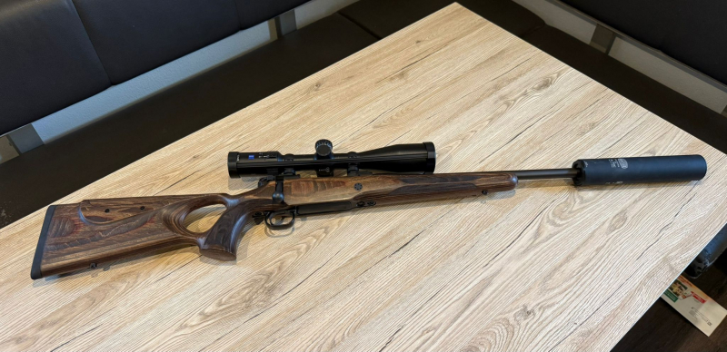 Lieferumfang: Komplett wie abgebildet inklusive Zielfernrohr, Montage und Schalldämpfer.