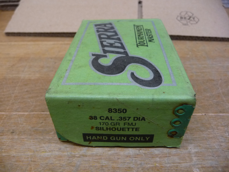 Hier wird z.B. eine geschlossene Packung mit 100 Stück Sierra Geschossen, .357, 170 grain, Silhouette angeboten.