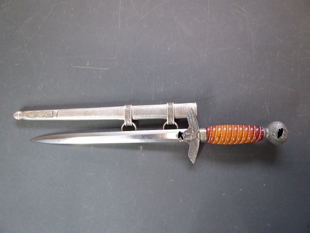 Aus meiner Sammlung gebe ich, einen alten Luftwaffen Dolch ockerfarbener Griff Hersteller ALCOSO SOLINGEN mit Scheide ab. Ockerfarbener Griff mit feingedrillter Wicklung. Stabile zweischneidige Klinge, Hersteller ALCOSO SOLINGEN. Scheide mit zwei Trageringe. Der Dolch ist im Guten Sammelwürdigen Zustand. Alles andere entnehmen Sie Bitte den Fotos. Gesamtlänge: 42,2 cm, ohne Scheide: 39 cm, Klingenlänge: 25,8 cm, Klingenbreite: 1,9 cm. Kann zu jederzeit bei mir besichtigt werden. Privatauktion keine Rücknahme und Garantie.