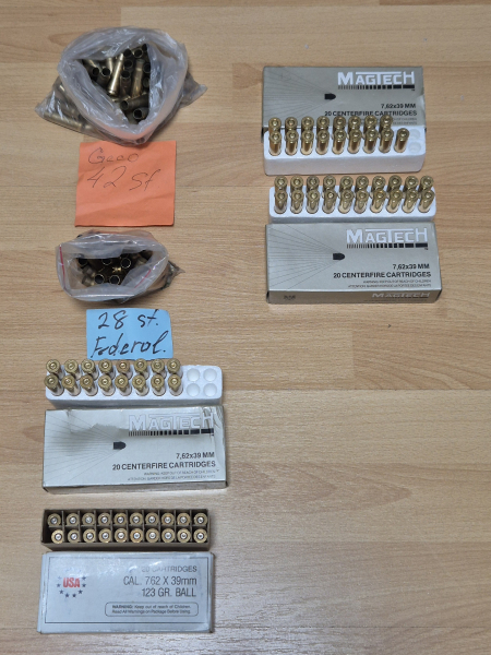 Verkaufe 7,62x39 Magtech Munition 37 Stück+ Hülsen 106 div. Hersteller ( 42 St. Geco, 28 St. Federal, 16 St. Magtech, 20 Stück WCC.