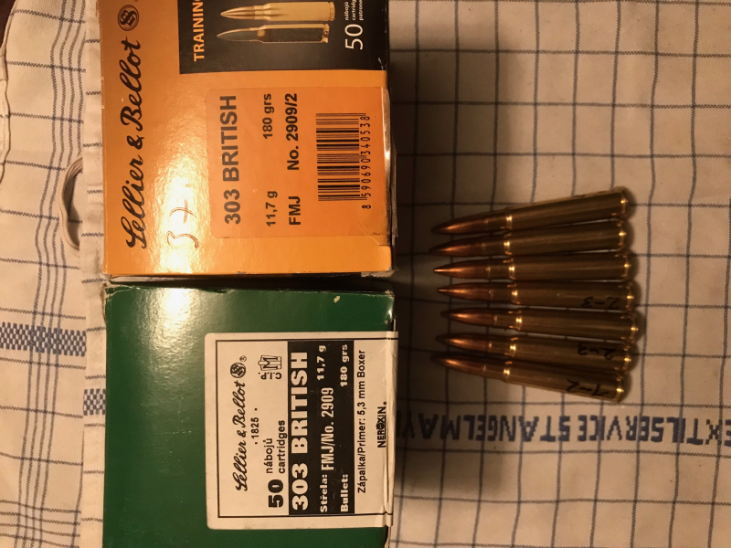 Von Privat aus einem Nachlass an EWB : 87 Schuss im Kaliber 303 Britisch von S&B mit einem 11.7 Gramm Vollmantelgeschoss - siehe Bild - auf einigen Hülsen wurden Zahlen geschrieben - Fabrikpatronen - Von Privat, daher keine Garantie oder Rücknahme - Versandpauschale 6 Euro - Verkauf nach Österreich nach Rücksprache möglich -