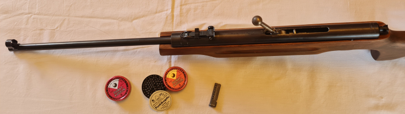 Zum Verkauf steht dieses Haenel 310 Repetierluftgewehr im Kaliber 4,4mm mit Sportschaft. Dazu gebe ich ein 8-er Magazin und zwei Schachteln original DDR Punktkugeln. Das Gewehr wurde genutzt und hat somit leichte Gebrauchsspuren. Der Buchenholzschaft wurde geschliffen und mit Holzlasur, Schaftöl und Ballistol behandelt. Mechanik funktioniert sehr gut. Die Sicherung sichert nur manuell, nicht automatisch. Der Druck ist als sehr gut zu bezeichnen. Die Kolbenfeder wurde gewechselt. Das Gewehr wird zerlegt in zwei Teilen versendet. Die Auktion bzw. der Verkauf erfolgt unter Ausschluss jeglicher Sachmängelhaftung, Gewährleistung, Garantie und Rücknahme! Da es sich um einen Privatverkauf handelt, wird keinerlei Garantie EU-Recht übernommen! Ich zahle EGUN, Sie die Verpackung und den Versand, viel Spaß beim Bieten. Wer seinen Altersnachweis bzw. seine notwendigen Personendaten im Bezug Verkauf und Versand nicht mit einer Kopie seines Personalausweises nachweisen möchte, sollten sich bitte nicht bei der Auktion beteiligen.