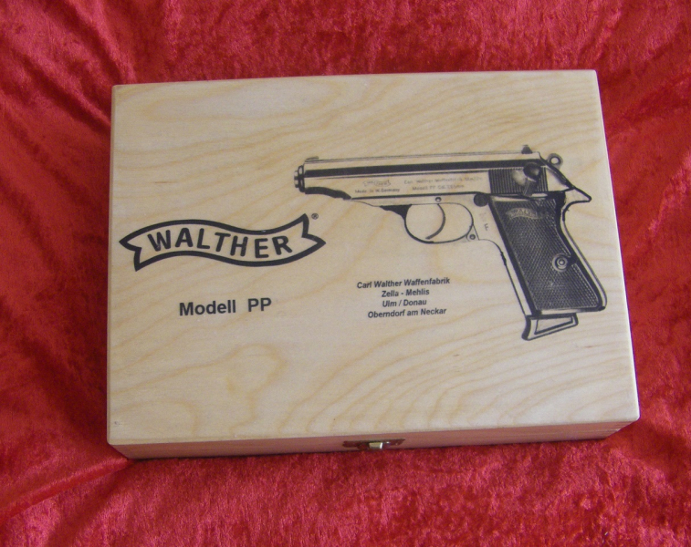auf Deckel gedruckt eine Walther PP und Firmenlogo