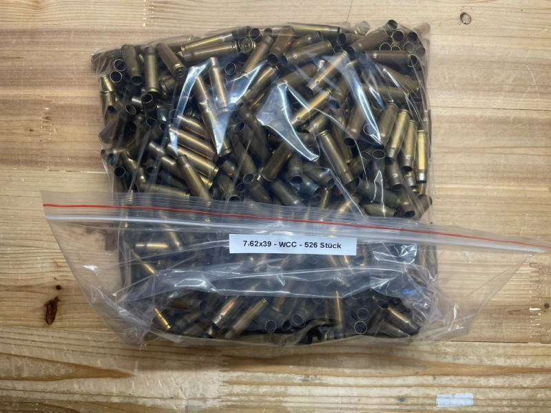 Zum Verkauf stehen 526 Stück Hülsen 7,62x39 der Marke WCC.
