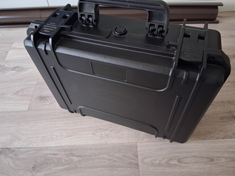 Wasserdichter Koffer mit verstellbaren Facheinlagen und mit Noppenschaumstoff im Deckel.