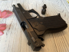 Hier kommt eine ältere Pistole (meines Wissens die erste in der BRD zugelassene SSW im Kaliber 9mm PAK) zum Verkauf. Die Waffe weist diverse Abriebspuren, insbesondere am Sicherungshebel, auf, die technischen Funktionen sind jedoch allesamt gegeben. Mit dabei ist ein Abschussbecher für Pyro-Munition.